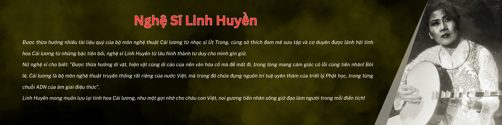 Phòng trưng bày là không gian lưu giữ và giới thiệu các tư liệu quý giá, những áng thơ ca, làn điệu dân gian cùng chân dung của các nghệ sĩ đã góp phần làm nên diện mạo sân khấu truyền thống Nam Bộ.